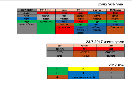 בשנת 2017 אמיר פיי גוטמן היה בשנה ראשונה ( מים ) מול ה 5 WU HUANG ( כוכב הקארמה ) והשנה עצמה הייתה של מים 1 KAN במרכז.