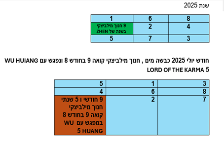 בשנת 2025 חנוך מילביצקי נמצא בשנה של עץ יאנג ZHEN במגמה של עליה וקידום אישי ומקצועי, אבל בחודש יולי עד ה 7.8.25 חבר הכנסת מילביצקי ממוקם בחודש ה 8 במחזור הקטן בן 9 החודשים.