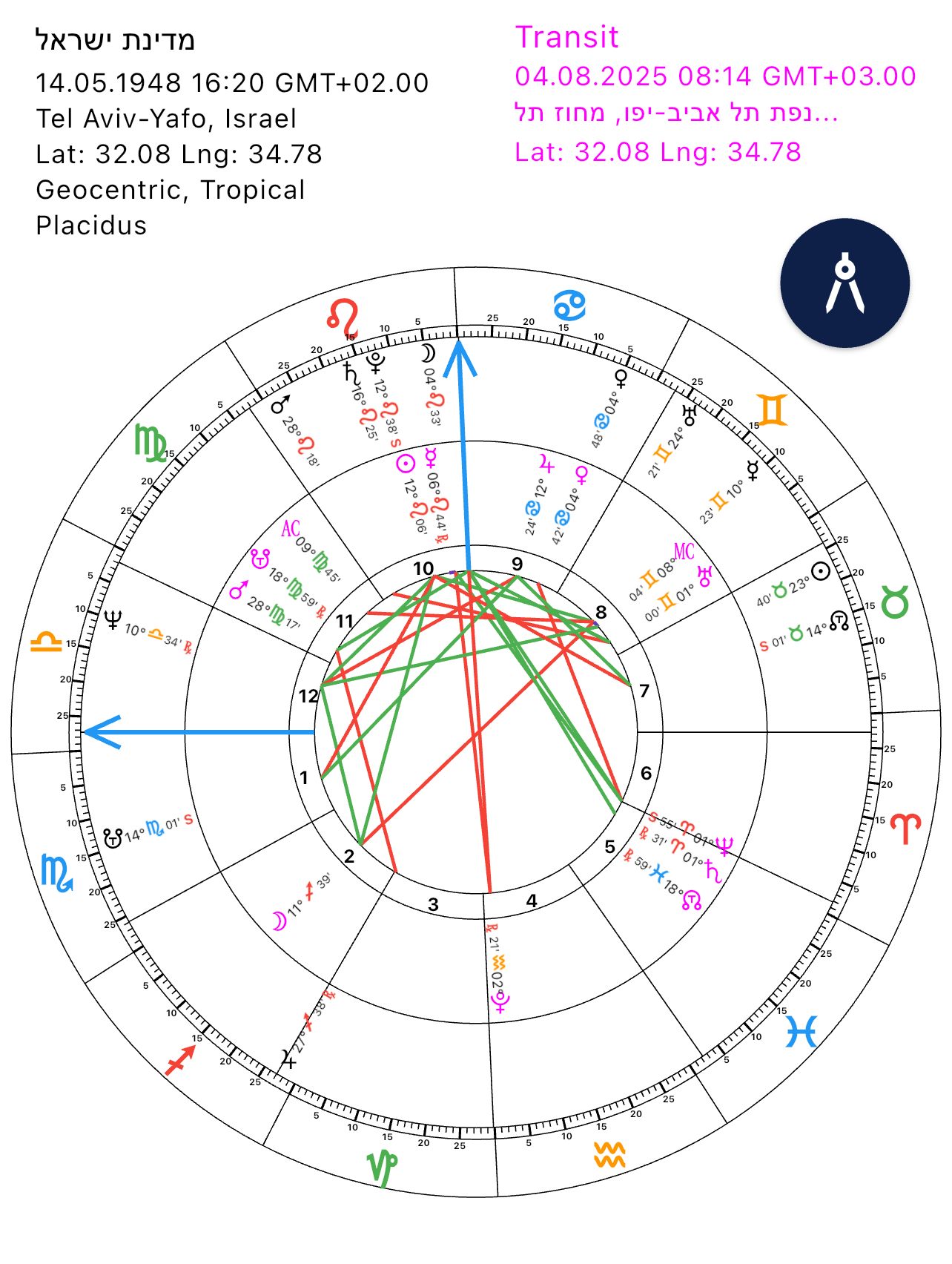 המפה האסטרונומרולוגית הירחית של ראש הממשלה ביבי נתניהו התאריך השמשי 21.10.1949 התאריך הירחי 30.8.1949
