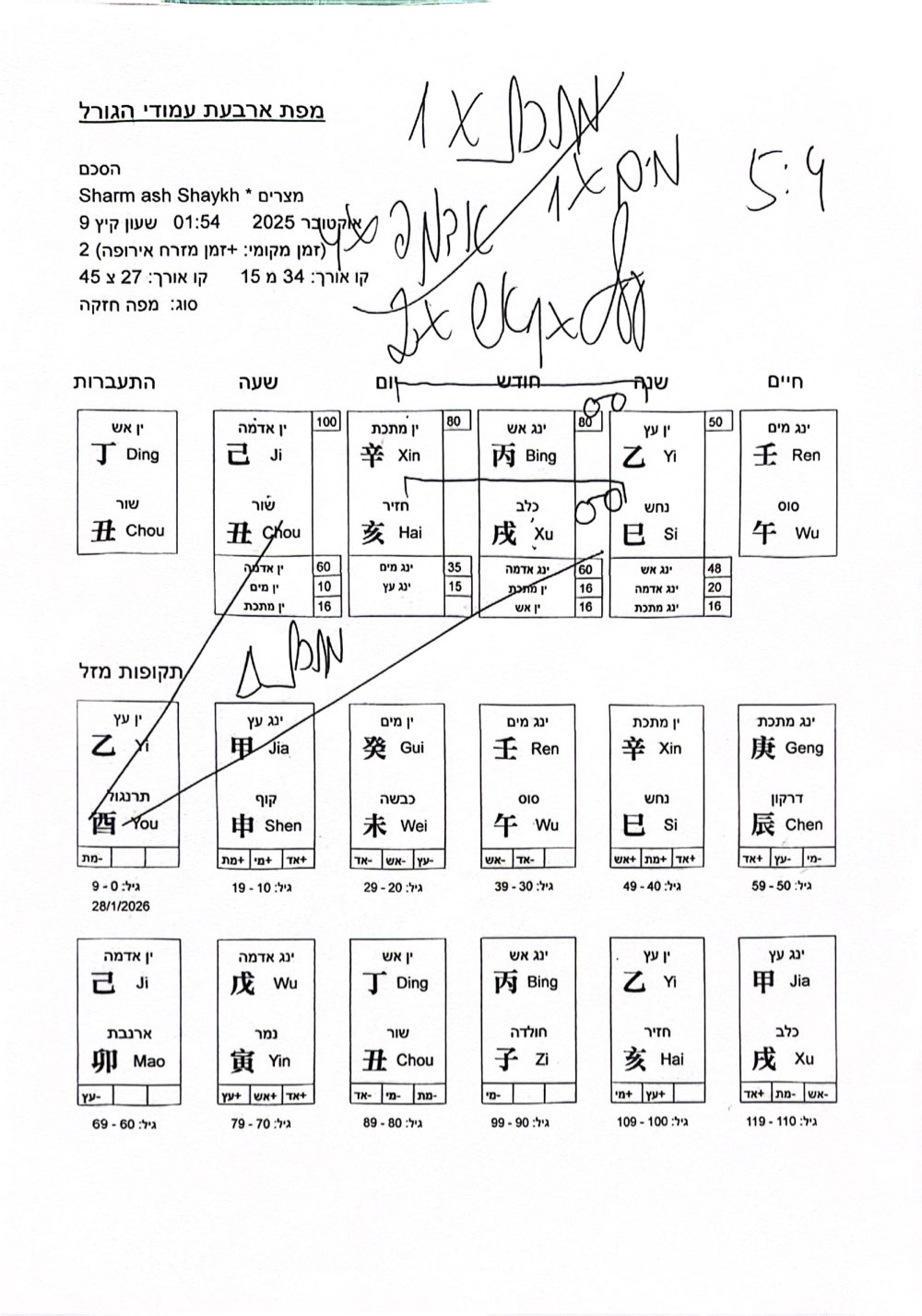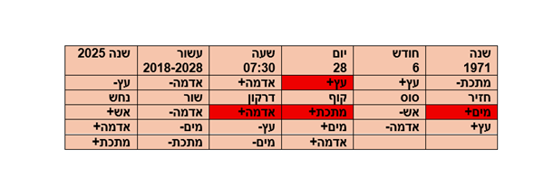ההסכם שנחתם בין ישראל והחמאס , נעשה בעיתוי גרוע ביותר , והוא העתק מבחינה רעיונית של יום הפלישה של רוסיה לאוקראינה. בשני המקרים מדובר בשבירה שנתית. ההסכם בין ישראל לחמאס נעשה ביום של CLSH מלא, לא רק של ענפים ( חזיר/נחש )אלא גם של גזעים ( עץ/מתכת ) המשמעות של לידת אירוע ביום של CLSH שנתי הוא, שמדובר באירוע בלתי פתור ובלתי פתיר, מכיוון ש CLASH כזה יוצר מצב שמחזיר את המעורבים לנקודת ההתחלה. CLASH בין ענף היום לענף השנה, או בין ענף היום לענף החודש, מחזיר את המעורבים למצב בלתי נגמר של קונפליקט ללא פיתרון ויתרה מכך הוא מחריף ומקצין את הקונפליקט.