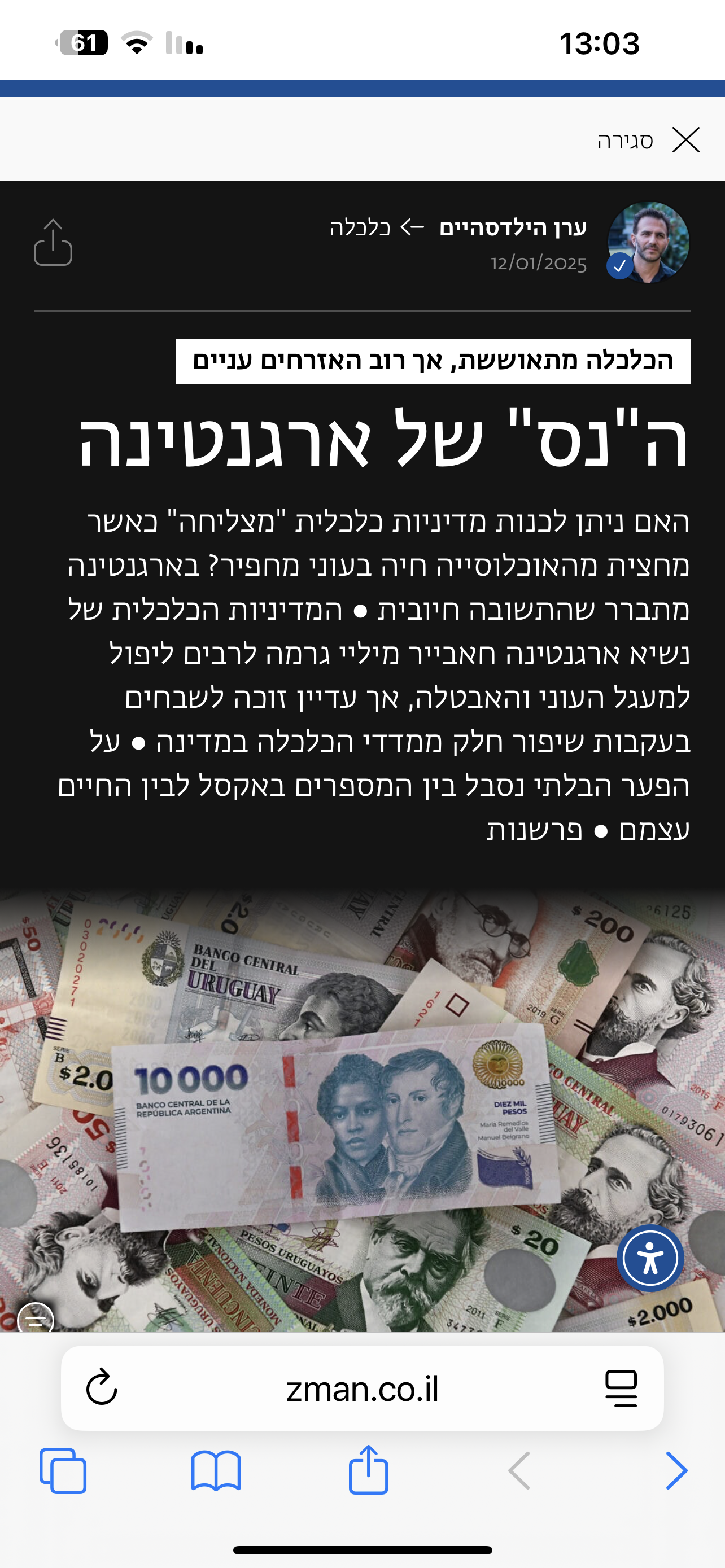 ואז החלו להופיעו עשרות מאמרים מקצועיים שמשבחים את הנס הכלכלי של ארגנטינה. אחת מהן באתר ZMAN.CO.IL