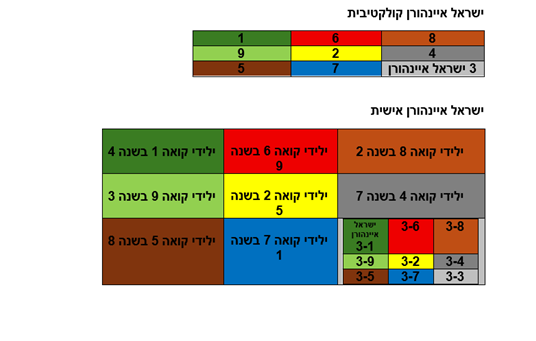 בכל זמן נבדק בהתייחסות הקולקטיבית, ילידי קואה מסוימת נמצאים כל השנה באותה משבצת, אבל בהתבוננות ובחינה מעמיקה או ברזולוציה גבוהה יותר, מגלים שכל ספרת קואה נחלקת ל 9 ספרות משנה, כך שנוצר מצב , שסך המזל באותה שנה או חודש או יום הוא שילוב של מיקום שנתי/חודשי או יומי קולקטיבי לבין המיקום האישי שמבוסס על חודש הלידה