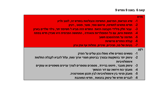 כוכב האפלה, השקר, וההסתרה שהיה כל כך פעיל ב 2023 והמיט עלינו את ה 7.10.23 נכנס שוב לפעולה ב 20.11.25 ועד ה 20.12.25 , משהו זדוני ואפל מתרחש מאחורי הקלעים והוא קשור בעבותות לעזה ולדרום ולסירוגין גם לצפון. לא באותה עוצמה בכלל אבל עדיין משהו מטריד. שקשור בחוזים והסכמים וסודות שנחשפים. אבל עד ה 20.11.25 מדינת ישראל מוגנת חלקית מסכנות וצרות. משהו טוב וחשוב מתרחש במישור הבינלאומי, אבל אבל במקביל בעיות תקציביות, בעיות בתחום הדיור והבנייה. מחסור בחומרי גלם מסוימים. ומחלות חורף בתפוצה גדולה יותר למרות מזג האוויר הכביכול נוח יחסית. עדיין, עד ה 26.5.26 העוצמה של מדינת ישראל בין אם זה אמיתי או לא מייצרת מצב שישראל נתפסת כמדינה חזקה ועוצמתית, אבל חודש אפריל מ 17.4.26 ועד ה 17.5.26 יקבע את גורל המדינה לשנים הבאות.