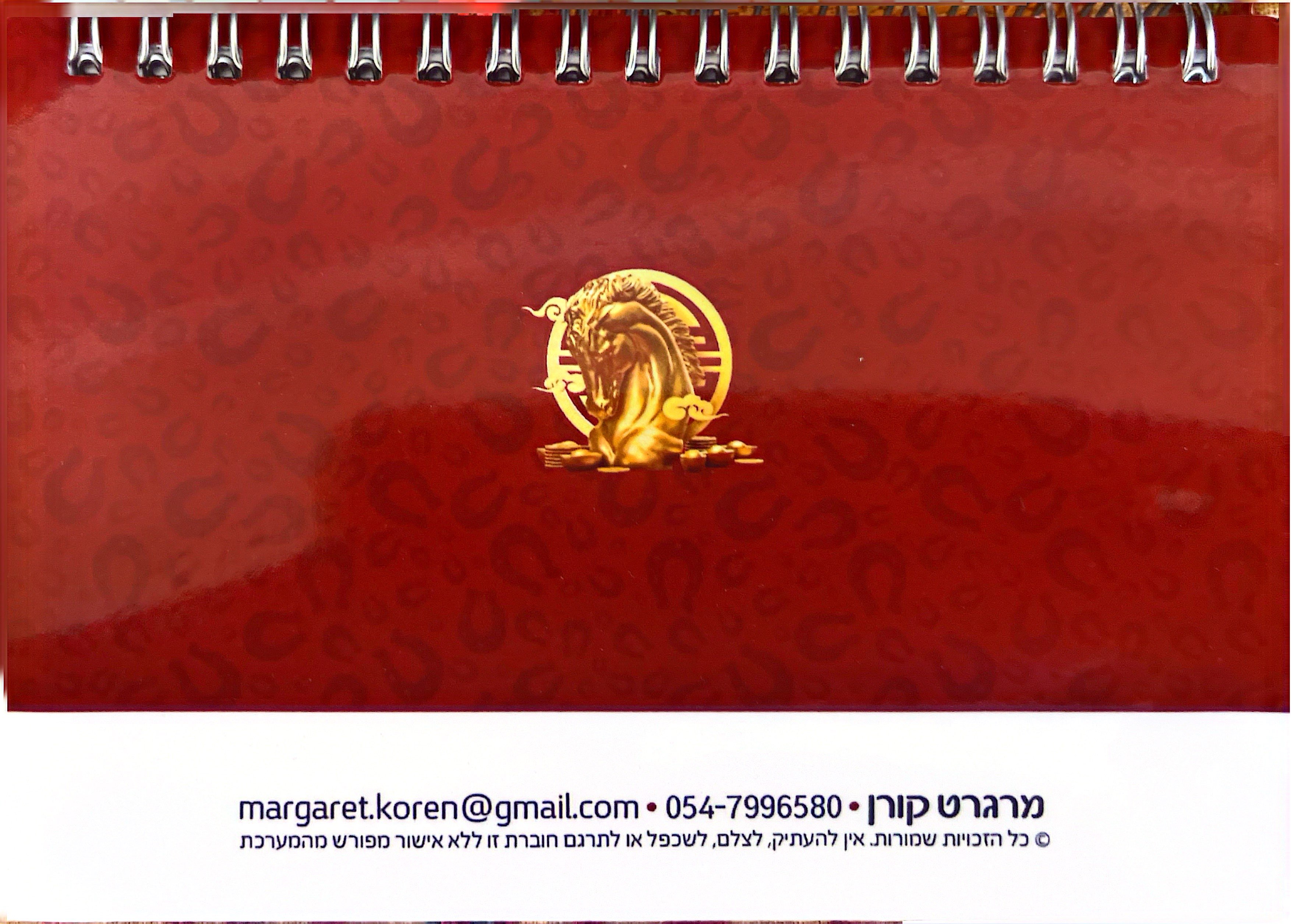כמיידי שנה ומזה 15 שנים, גם השנה הזאת 2026 , מרגרט קורן הוציאה לאור את היומן האסטרולוגי שלה למכירה. מדובר ביומן מרהיב ביופיו, נוח לקריאה, המידע זמין ונוח לשימוש , ולא רק זאת השנה הוא מכיל גם חיזוי וגם נתונים רבים המתאימים לכל אלה הזקוקים מידע מהיר נוח וזמין בכל עת.