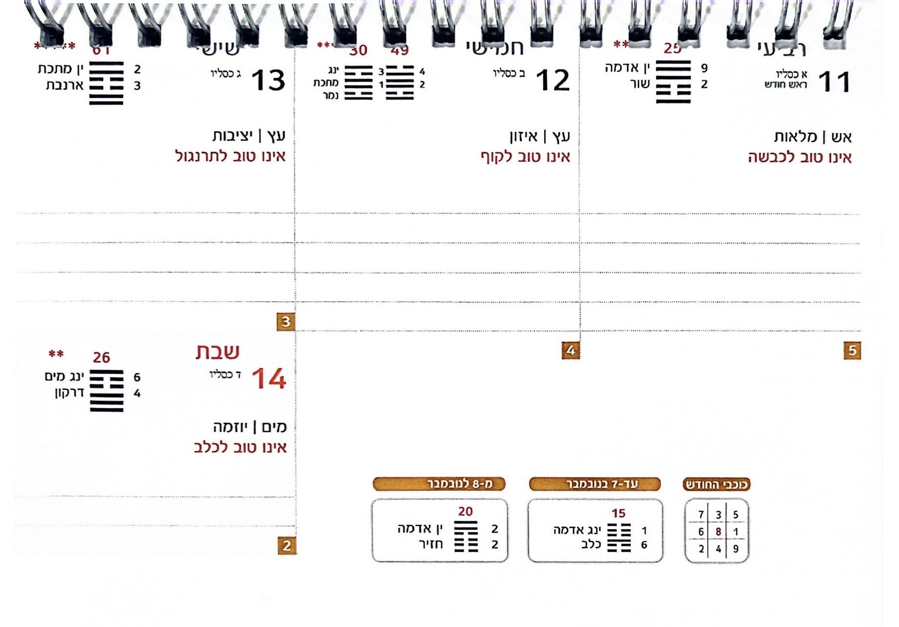 היומן קומפקטי ומתאים לאלה מכם שיש להם ידע בסיסי וראשוני באסטרולוגיה סינית.
