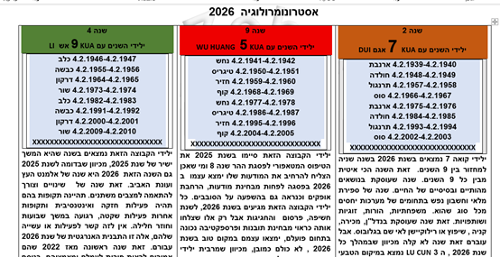 השנה הוצאתי לאור ספר לשנת 2026 שנת סוס האש שמכיל את כל המידע הנחוץ למי שבתחום , לראשונה מזה 20 שנים הספר השנתי הודפס ברמה גבוהה ביותר, ב צבע מלא בחדות ואיכות טובים ביותר