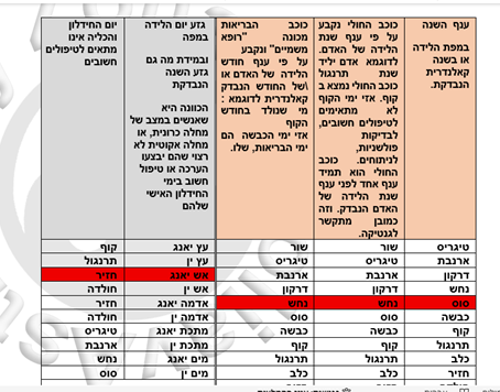 לוח שנה בין עשרות עמודים, המכיל את כל המידע הנחוץ לגבי כל יום ויום במהלך השנה, המידע כולל את כמות חמשת האלמנטים בכל יום ויום