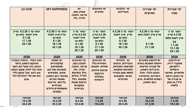 מקבץ מרוכז של כל הימים הטובים והטובים פחות של שנת 2026